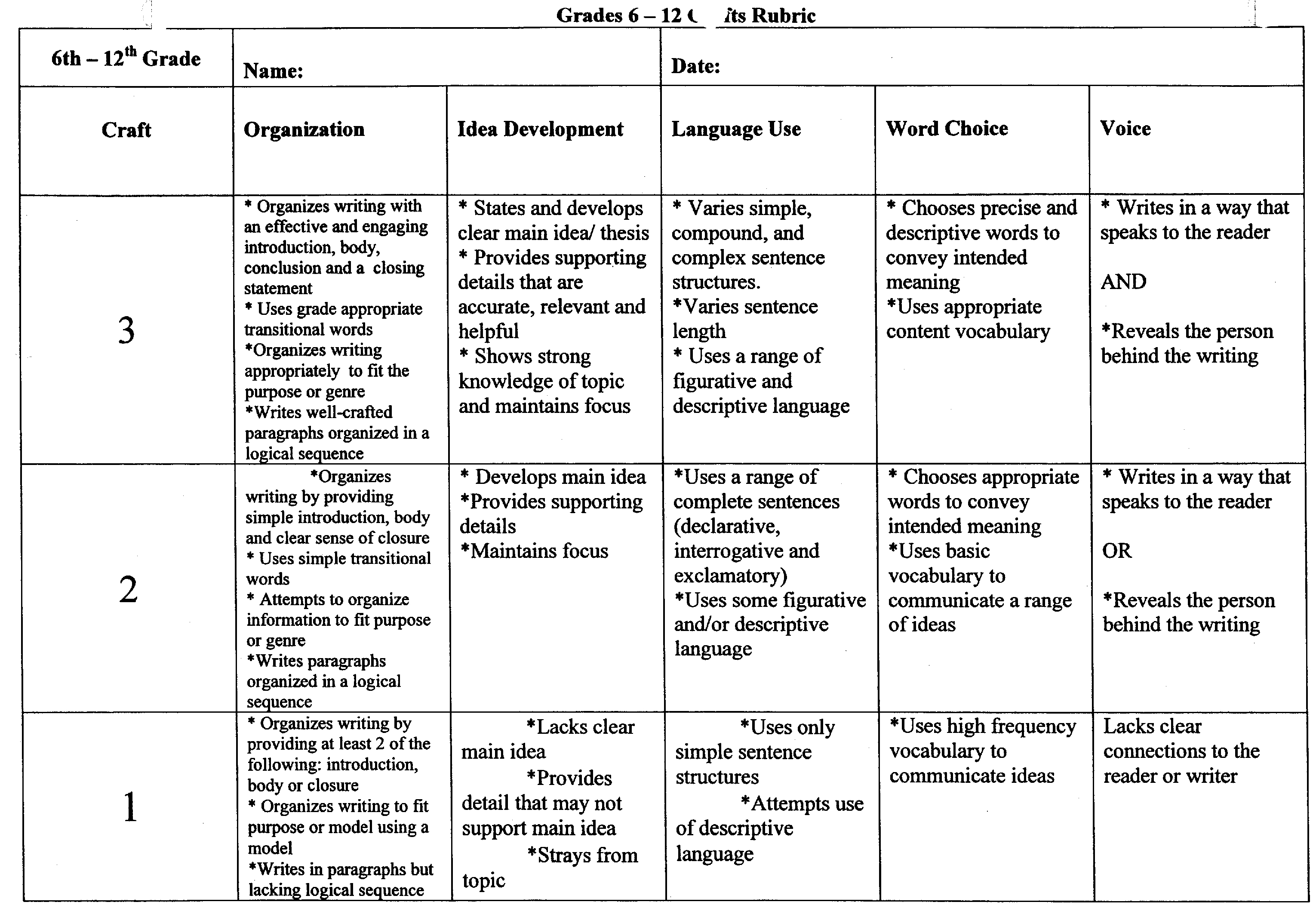Writing-Rubric-Craft