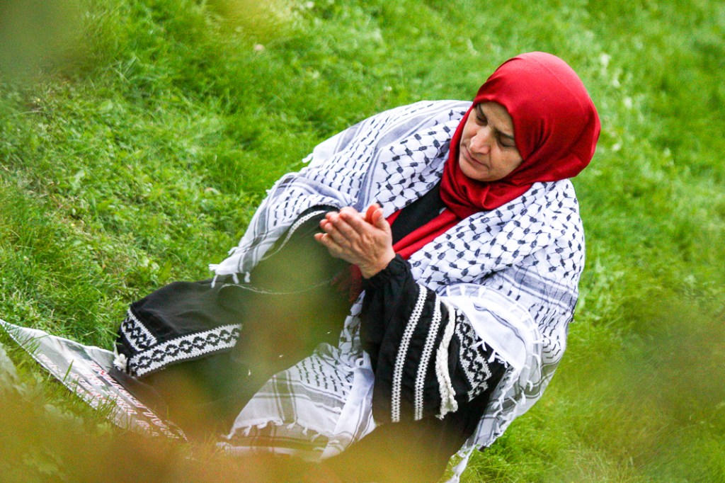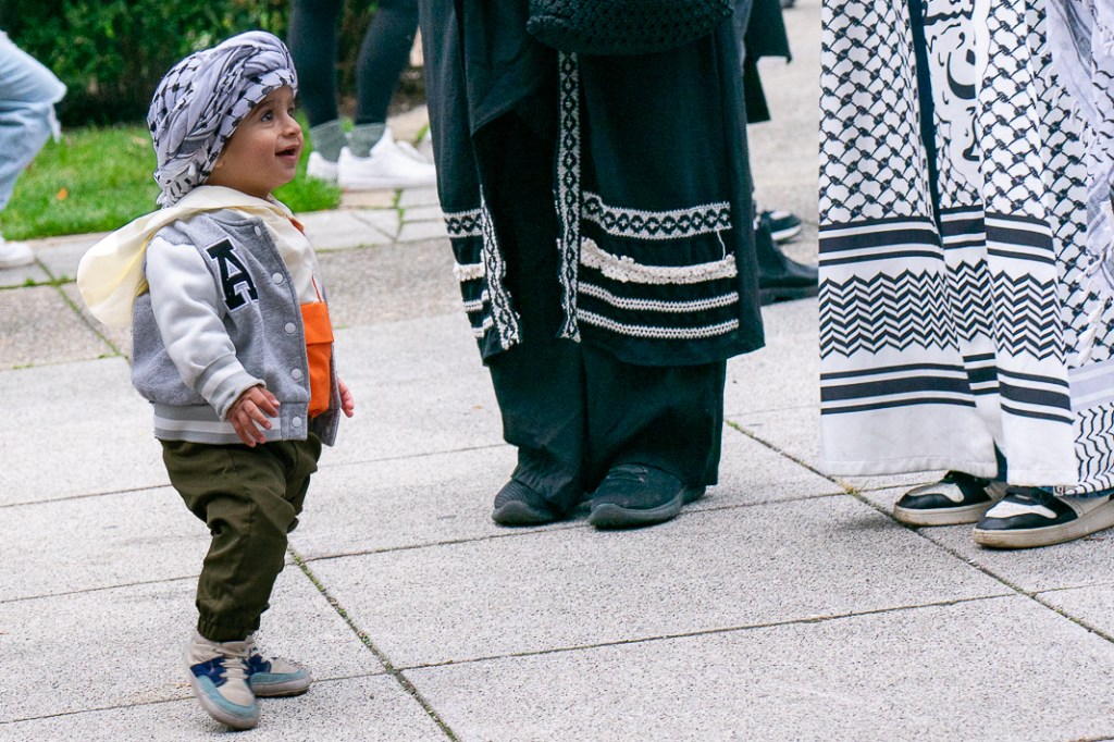 The most surreal part was the contrast that I was immersed in. On my side of the river, brides and their bridal parties lined up along the river for their wedding photos as if nothing was going on. Amongst them was a street performer playing guitar and singing, “I’ve got sunshine, on a cloudy day.” But on the other side of the river, thousands were chanting “Resistance is justified – when people are occupied” and “Biden Biden you can’t hide – we charge you with genocide!”