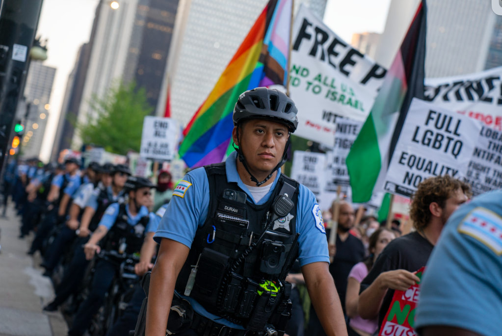 Ok, enough about that rant. Moving on. So last night was the first official permitted protest, led by Bodies Against Unjust Laws, a coalition for reproductive justice and LGBTQ+ liberation. This protest was the only one permitted to march down MIchigan Avenue, starting from the Chicago River and moving to the General John Logan Memorial statue, the location of a huge riot during the 1968 DNC. Probably the most important thing about this particular protest is that it would probably set the tone for the week.