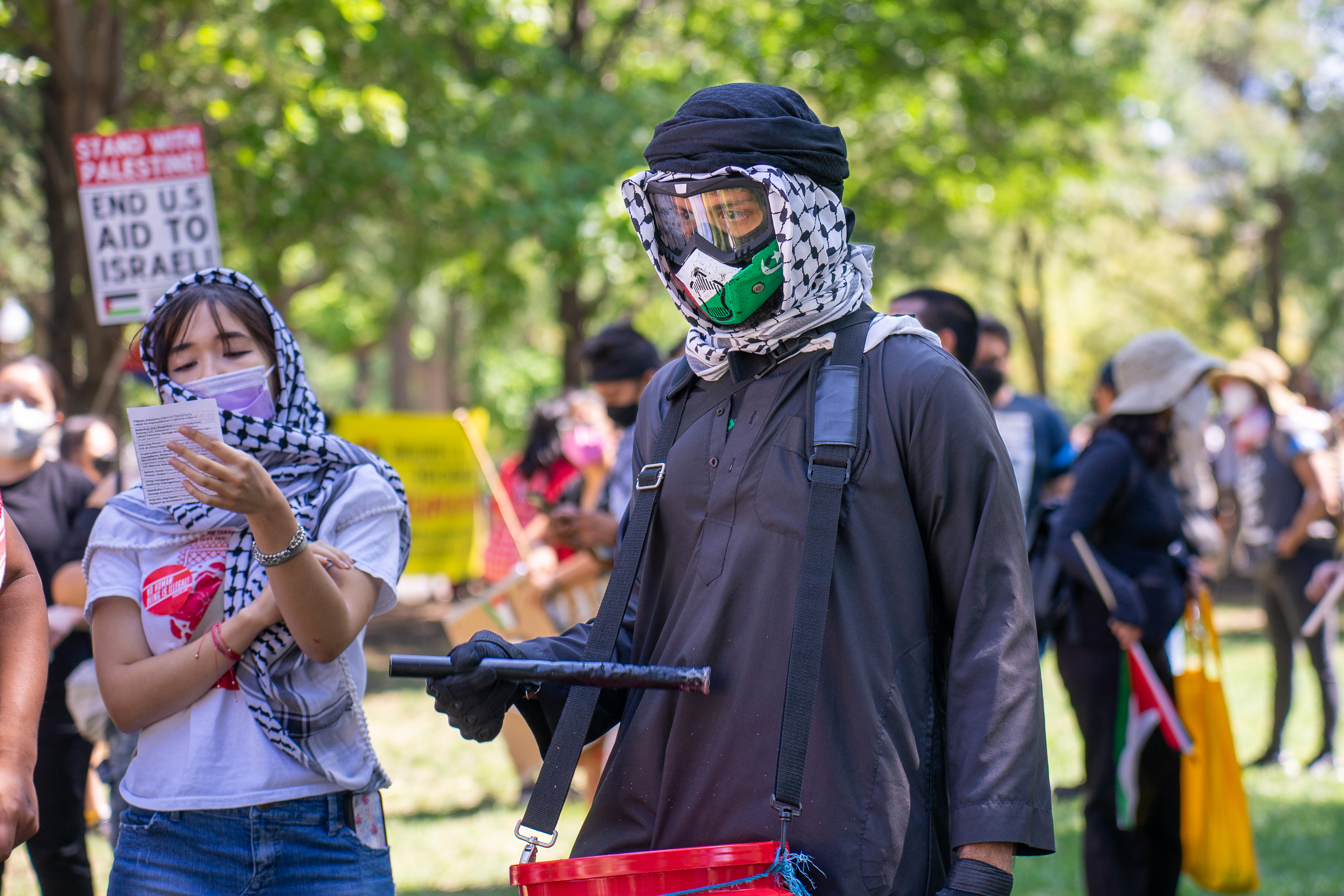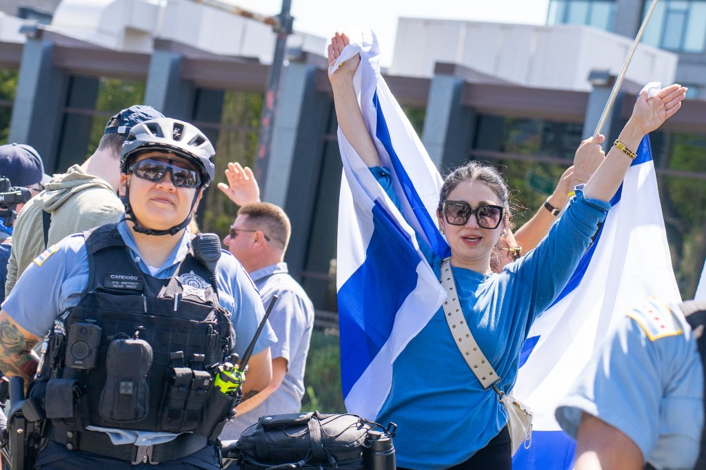 And the requisite counter-protesters. This time it was a group of people with Israeli flags. They marched into the park and were quickly escorted by police and led to the edge of the park. Some protesters followed and taunted them, but for the most part, the police did a good job of surrounding them and avoiding any problems.