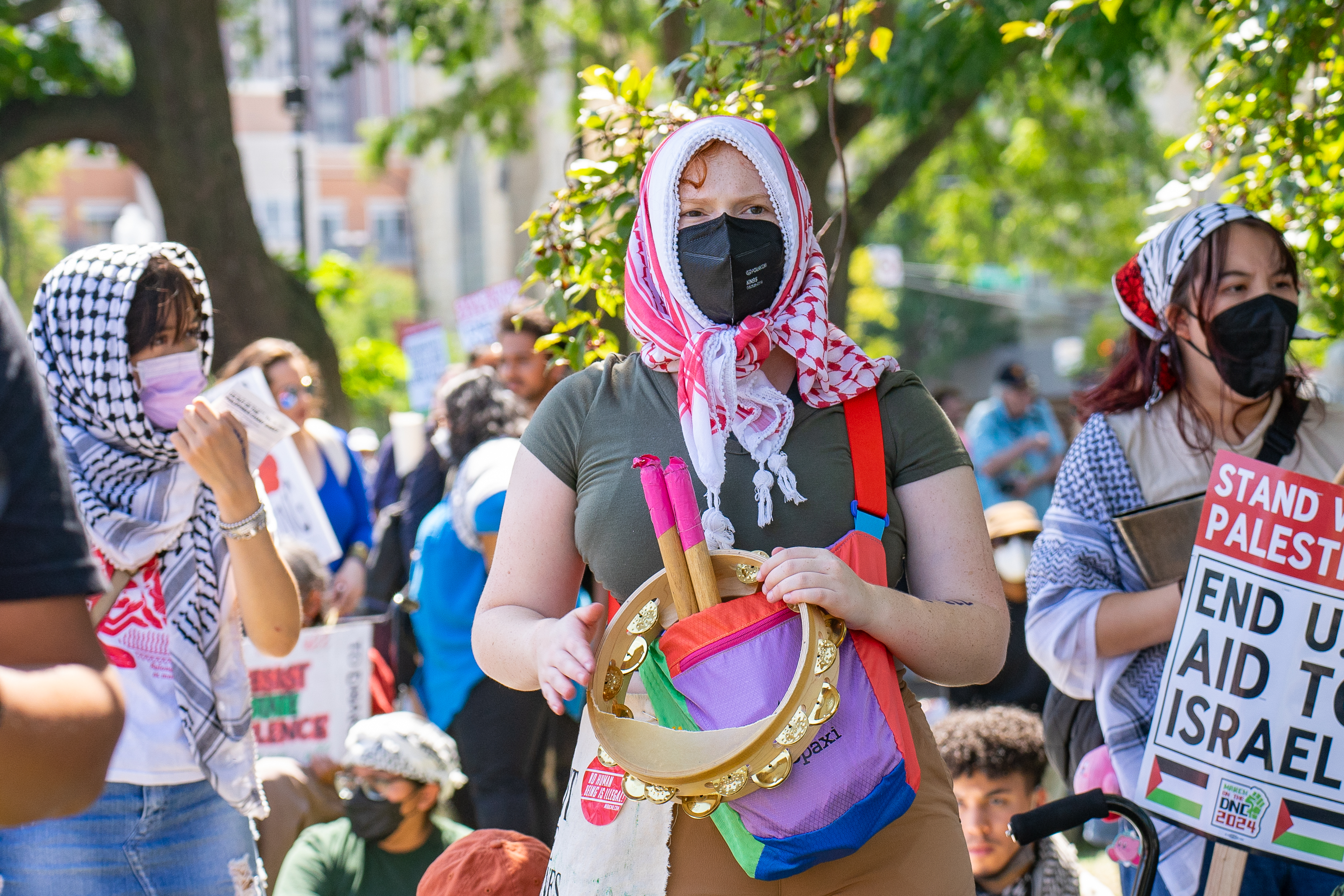 At the State/Lake station in the Loop as I waited on the platform, a group of five protesters (complete with signs, keffiyehs, and even a banner) climbed up to the platform. We boarded a half-filled train. A young woman sitting next to me saw the crowd and said half outloud and half to herself, “Oh, I guess I can pull this out now,” as she pulled her keffiyeh from her backpack and proceeded to try it on. A few people noticed and did the same. Soon, everyone was laughing at the fact that so many were hiding them until they saw others and felt comfortable pulling theirs out.