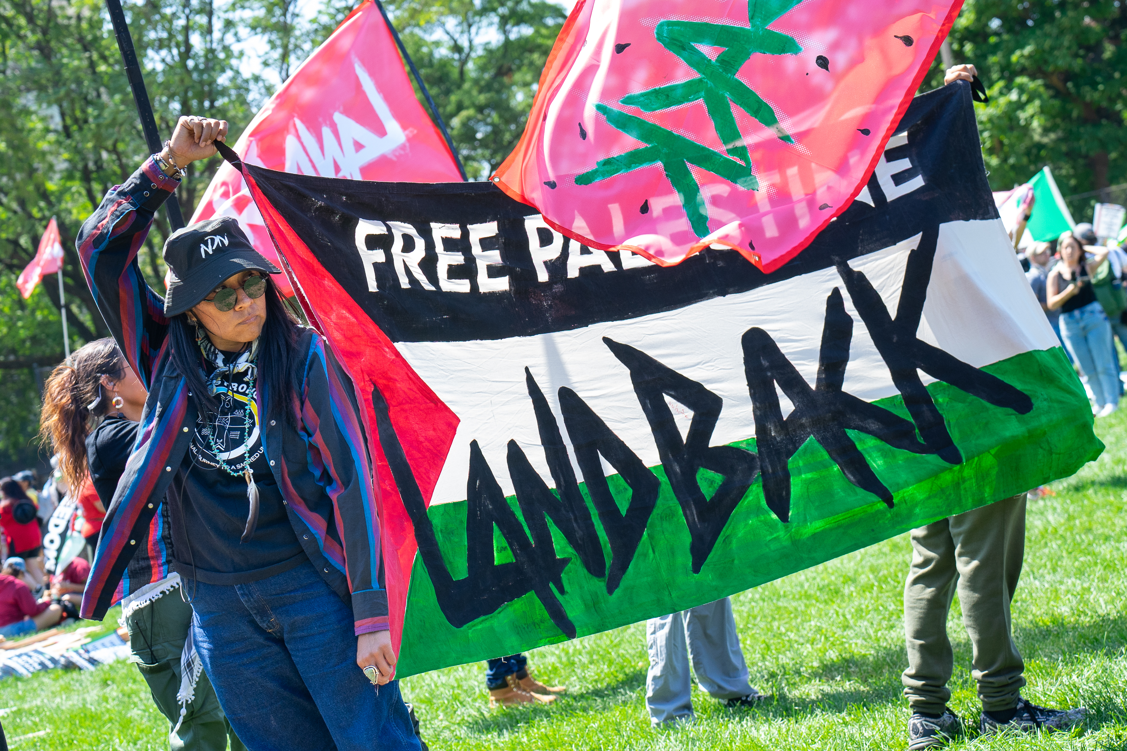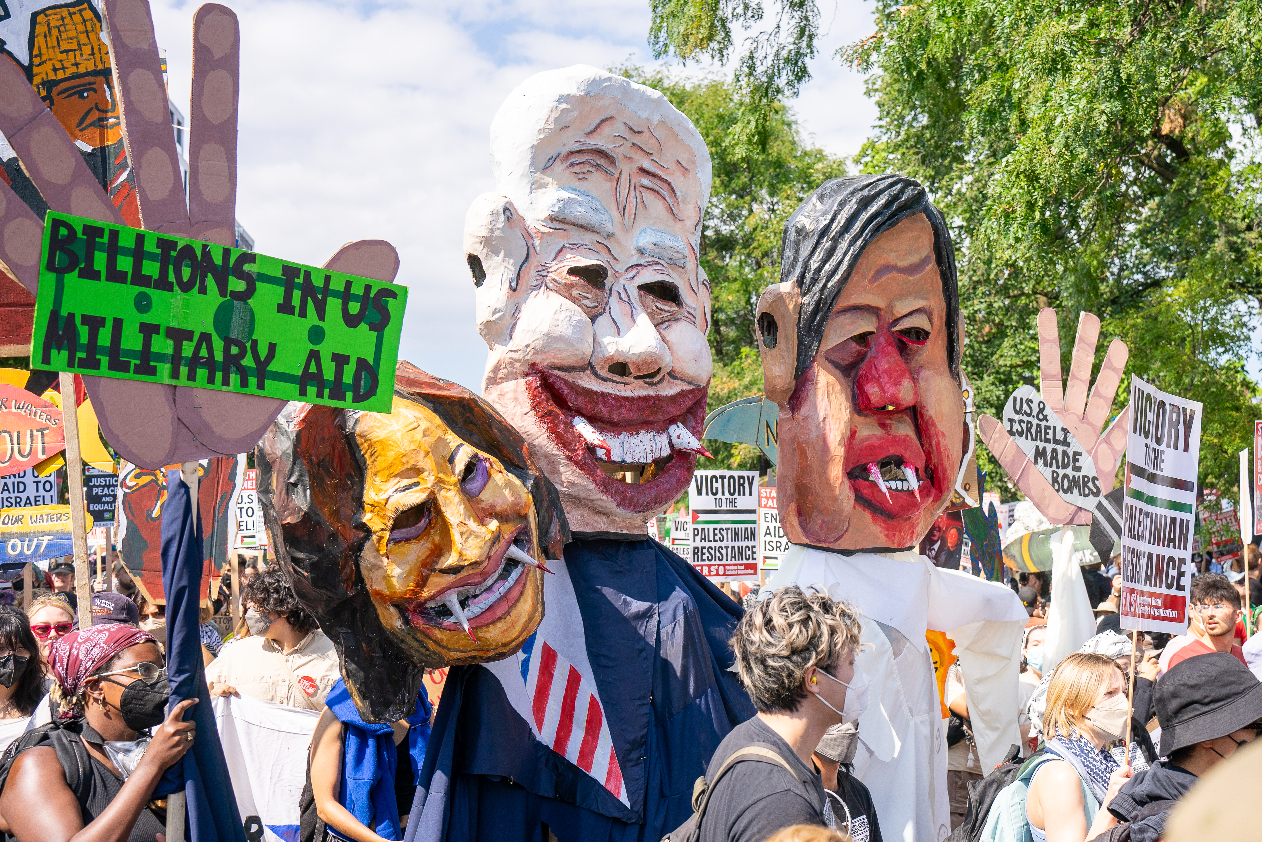 Not too much to tell – all the usual characters: Palestinian flags, communists, street preachers, cops, black bloc agitators, piles of signs, never-ending list of speakers on stage.