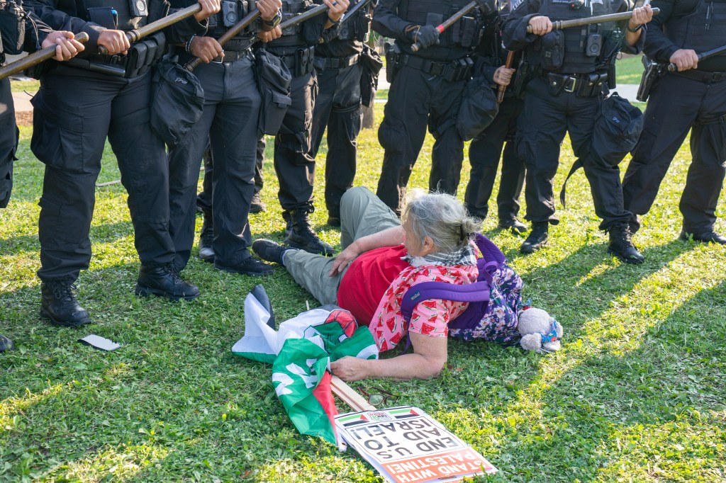 The police then proceeded to push everyone still there out of the park. They formed a long line and in unison chanted, “Move back,” as they stepped forward. One older woman got tangled up in the line and went down. She was eventually helped up by an ABC reporter as the police stood frozen and watched. But she laughed. She claimed she was 80 years old and that it would take a lot more than this to stop her.